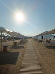 Нам пляж не понравился, очень много народу, музыка из кафешки орет так, что можно оглохнуть, море грязное как и сам пляж. Душевые есть, шезлонги и зонты тоже, все за деньги