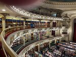 Очень необычно разместить библиотеку в бывшем театре. Здесь можно найти любые книги на разных языках. Есть отдел со старыми грампластинками. Здесь, несмотря на размеры помещения, тихо и уютно на всех этажах