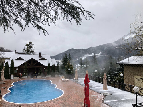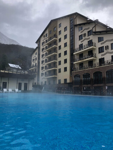 Отель на горе. На территории есть 3 бассейна. Один крытый 25 м и 2 бассейна подогреваемые с видом на горы.