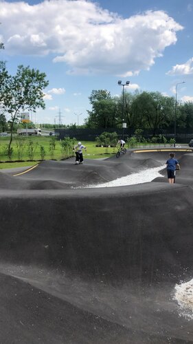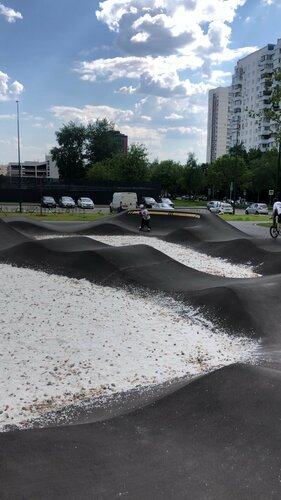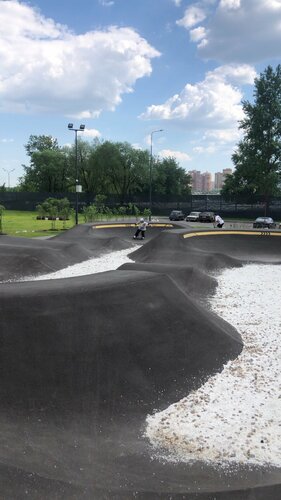 Очень качественный, новый и с правильными фигурами памп-трек. Детей не так много. Стоянка для машин рядом, и бесплатная. Еще рядом в 30-40м новый громадный, бетонный скейт парк, баскетбольная площадка, тренажеры, беговая дорожка, лазелки, зелень и скамеечки. И еще рядом строят крытое мини футбольное поле на летний период (или заливаемый каток на зиму) с минитрибунами и передевалкой (но это только строится). Единственное кто-то не очень сведующий спроектировал засыпать гранит в памп-треке внутри квотеров. Хотя лучше было бы посадить траву. И теперь маленькие гранитные камни валяются на всей трассе. Это не безопасно, так как они попадают под колеса, а на скейте это приводит к остановке скейта на скорости и падению скейтера на асфальт. Нужно приносить с собой метлу и подметать перед катанием. А так, огромный респект городу и строителям за хороший памп-трек и спортзону! А камни со временем скорее всего народ растащит и будет отлично.