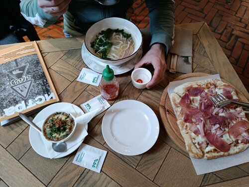 Добрый день! Я очень полюбила это место. Тут прекрасный интерьер. Очень вкусно. Брали пиццу карнео, фо бо, пасту карбонара, апельсиновый РАФ. Очень вкусно! Отдельное спасибо за журналы "Истра". Спасибо "Давыдов", мы ваши поклонники!