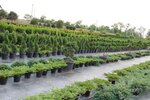 Довольно большой садовый центр, большое количество разнообразных саженцев для обустройства двора.
