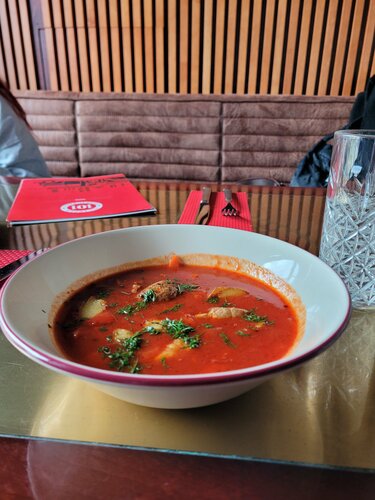 Ресторан в здании бывшей пожарной части, поэтому все оформление соответствующее, оно интересное, даже официанты в форме :) Кухня порадовала - все, что мы брали, было вкусно!