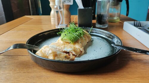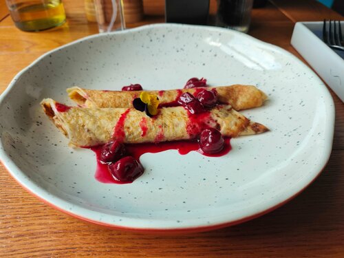 Прекрасное заведение. Заказывал омлет с креветками и авокадо. Блюдо отменное и красивая подача. Блинчики с вишней очень понравились. Те гуань Инь подали с фильтр-чайником и термосом с необходимой температурой. Лёгкий цветочный вкус - именно то что нужно утром.