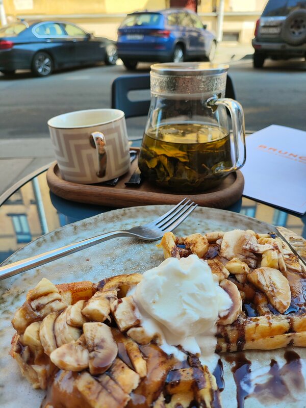 Всё было очень вкусно. Заказал brunch mix - все продукты свежие очень хорошо сочетаются в этом блюде для завтрака. Вафли с бананом, карамелью и пломбиром - выше всяких похвал.