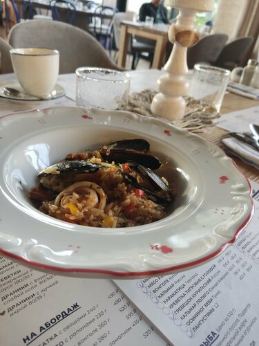 Третий раз посещаю данное заведение. Впечатления исключительно положительные. Были заказаны блюда: - салат Цезарь с креветками; - салат мимоза; - салат греческий; - закуска сельдь с картофелем; - креветки обжаренные в сырном соусе; - рыба сибас; - рис с морепродуктами; - томатный суп пюре с крабом; - брускетта с крабом и авокадо; - чай облепиха/маракуйя; - чай манго/маракуйя; - десерт каспийский берег. Десерт и креветки не заказал бы ещё раз. Сельдь с картофелем и сибас оказались очень хороши - обязательно закажу ещё раз. Хотел бы отметить чай облепиха/маракуйя - умеренно сладкий и вкусный.