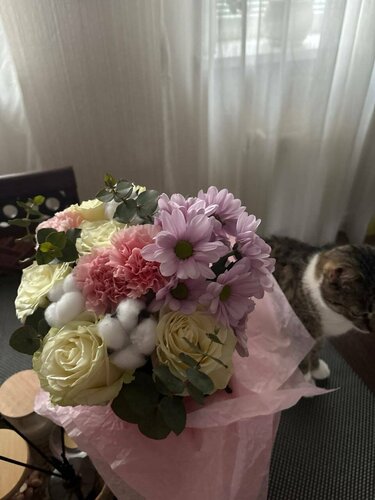 Букеты хороший красивый:) Заказывал к важной дате - но к сожалению не соответствую картинке в худшую сторону ( тот что на фото салона заслуживает 5, фактический только до 4) Предлагаю сравнение 1 фото - салон, 2-3 фото доставка. Розы немного застаяли, кончики подзавяли до