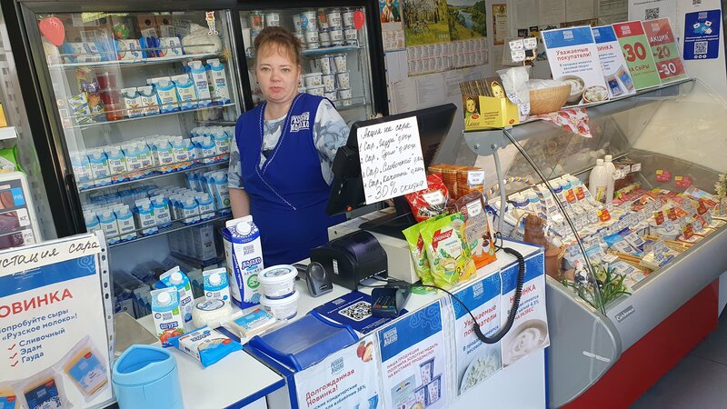 В магазине "Русское молоко" большой ассортимент молочных и других продуктов, а также напитков и необходимых на деревенском отдыхе бытовых товаров, книг. Работает ежедневно в рабочие и в выходные дни в удобные часы с 9 до 20ч. Близко к автомобильной трассе, удобный подход. Приемлемые цены, большой ассортимент и высокое качество молочной продукции известной марки "Рузское молоко". Продавец Оксана очень внимательна к покупателям всегда предлагает товары со скидками 20-30% по акциям, советует в выборе по фасовке и жирности разных марок сыров, творога, молока, сливок кефира, йогуртов, ряженки и др. Для оплаты принимаются банковские карты, можно оплатить платёжными программами с помощью смартфона. Спасибо руководству за хроший магазин и высокое качество обслуживания покупателей!