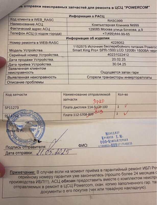 Работают дилетанты. Сдавал по гарантии Ибп купленный в ОнлайнТрейде. Ибп на ремонт поехал к этим инвалидам. В итоге через 45 дней прислали обратно. Вердикт - сгорела плата, поменяли. Привез домой, включаю, экран на Ибп горит, всё ок. Компьютер не реагирует на запуск никак. Чтобы не подключал к ИБП, реакции нет никакой. Отвез снова В Сц, снова он у них провалялся 45 дней. Отправили обратно. Вердикт - с Ибп всё в порядке! В пункте подключаю его к напольному вентилятору - всё работает, хм. Забрал домой, и о чудо, компьютер включается. Всё таки было что-то сделано, но в акте решили ничего не писать, ну ладно. Радость была недолгой, через пару дней перестала снова реагировать кнопка запуска компьютера, запуститься он мог с 10 или 20 раза. Мог работать неделю стабильно, потом снова качели. Далее просадки по вольтажу в Аиде, куллеры в системники переодически тупо отваливались. Материнка ругается на неисправность - горит белая лампочка. На днях тупо вырубился компьютер, просадок и скачков никаких не было. Просто вырубился и не стал больше включаться. Компьютер от сети на прямую или от другого Ибп работает стабильно. Нагрузки никакой не давал, это всё происходило тупо в простое компьютера с открытым браузером. Дважды побыв в СЦ ничего сделать не смогли. Самое печальное, что третий раз смысла отправлять нет, т.к. эти инвалиды поломок не найдут никаких. Как можно не проверив технику после ремонта отправлять её обратно клиенту ? У кого-то явно руки растут не из того места. Оценка в Яндексе не соответствует этой шарашкиной конторе, здесь даже единица много. Кто-то ещё сюда за деньги носит в ремонт технику?! 🤦‍♂️