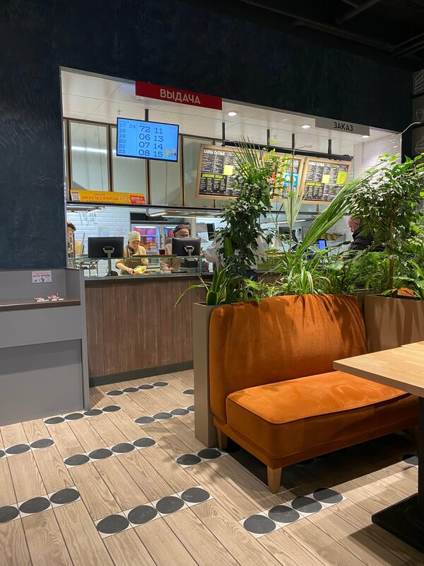 Дополнение от сентября 2025 г. В часы пик не успевают с уборкой, столы грязные, плюс некоторые гости посуду за собой не убирают. Возникает парадокс формулировок Теремок хочет быть рестораном, а гости в ресторане за собой не привыкли убирать, в итоге теряется сервис для основного потока гостей. Отзыв от 2024 г. Теремок значительно преобразил интерьеры своих кафе самообслуживания, в т ч и на Снежной 26. Комфортно, достаточно компактно. Блюда, напитки вкусные, сытные, средний чек на 1 чел 800 руб, здесь же можно и на 600 р поесть. Даже в часы пикового трафика готовят за 15-20 мин. Нам для семьи из 5-ти чел не хватило детского стульчика для маленького ребёнка, детский стульчик всего 1 на все заведение, а в спальных районах с детьми в кафе ходят часто. Есть система лояльности с приложением и сайт.