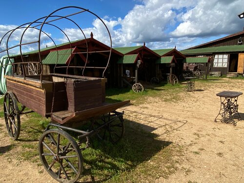 Колоритное местечко в стиле ковбойского ранчо расположенное в живописной локации. После входа с автопарковки на ранчо каждый элемент погружает Вас в незабываемые впечатления и создает 100% ощущение присутствия на «диком западе». Конюшня, загон для лошадей, salon’ы и бар с залом для танцев и подиумом все относит ко временам ковбоев. На ранчо проводят прогулки на лошадях, есть несколько игровых зон, в которых Вы сможете проверить свое мастерство стрельбы из лука, арбалета, метания топоров, провести отличную костюмированную фотосессию и многое другое. Отличный кейтеринг, все сотрудники одеты согласно периода «дикого запада», также Вас не оставят равнодушными шоу и выступления. Есть зона для прогулки по равнине с осмотром и кормлением животных. Тарифы на размещение и отдых для пар и компаний смотрите на сайте.