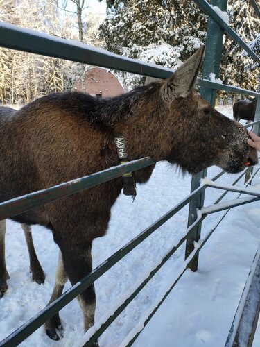 Первоянварский день порадовал не только прекрасной погодой, но и восхитительной экскурсией по лосиной ферме. Экскурсовод, сотрудник фермы влюбленный в свою работу и своих питомцев, был в ударе: шутки -прибаутки, оригинальное представление лосей, душевная атмосфера, большой мешок лакомства-морковки. Большие добрые животные, которые едят морковку с рук гостей. Много лосят.