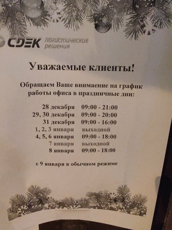 Было бы здорово, если бы "уважаемых клиентов" информировали о графике работы не только на дверях пункта выдачи. 40 минут пешком до адреса только чтобы узнать, что сотрудникам было лень потратить 2 минуты и изменить график работы в Яндекс картах.