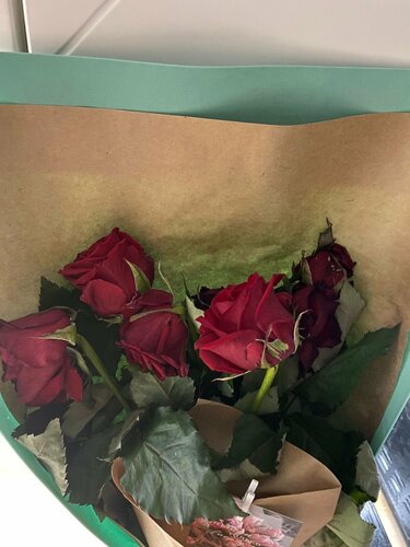 Ужасные цветы.Заказал любимой на 14 февраля букет.Заказ привезли 13 февраля примерно в 21:00.14 февраля в 19:00 уже 6 цветов из семи завяли.Стояли в воде.Подрезали сразу после получения.На вопрос о возврате средств за товар ненадлежащего качества был ответ что отправили цветы из свежей поставки высокого качества.А по факту нет.Не рекомендую эту контору.