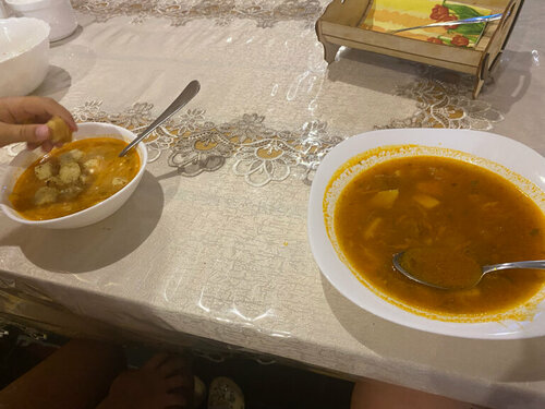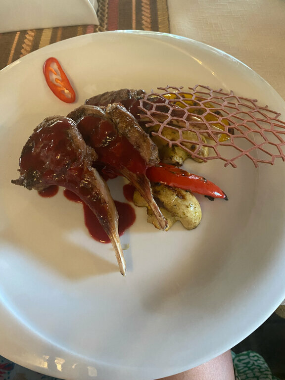 Колоритное место, этнический акцент, ненавязчивые обслуживание , ожидание среднее , еда вкусная , Но! Из заказа на двоих все блюда вынесли мужчине, я сидела :голодными глазами «наслаждалась» как он ест ,мое каре я ела последняя в одиночестве( блюда приносят всем гостям или предупреждение Это минус. А в Целом рекомендую к посещению, вкусно, чек средний, ожидание средние национальные костюмы - красиво.