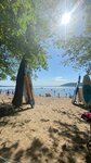 Очень хорошее место для отдыха с семьёй. Из развлечений только саабы но плавать на них опасно потому что катера и водные мотоциклы проплывают близко с берегом. Детской площадки нет а парковка для машин самодельная (паркуюсь как хочу). Пляж относительно чистый но цветущие водоросли немного портят общий вид. Биотуалеты в плачевном и ужасном состоянии но это бесплатный пляж так что хорошо что они вообще есть.