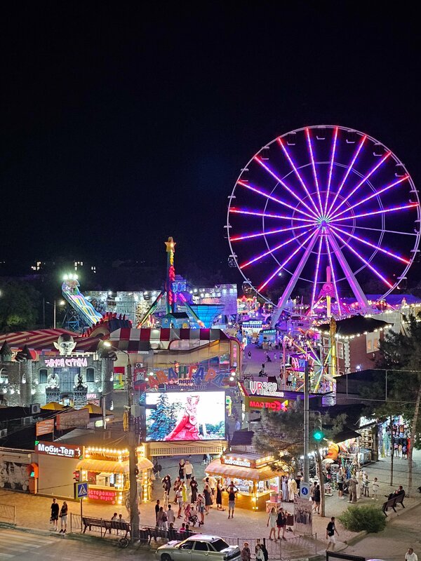 Отличный парк атракционов ! Там есть как детские, так и взрослые атракционы. За безопасностью внемательно следят. В кабинках колеса обозрения есть кондиционеры, которые создают комфорт.