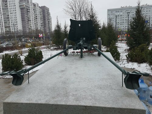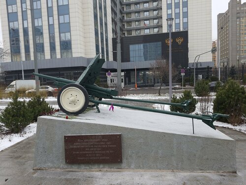 Москва помнит. Памятный знак жителям Таганского района - участникам Второй мировой войны. Установлен к 65-летию битвы за Москву. В Таганском и Первомайском районах сформирована 14-я ДНО, которая потом расформировывается и ее ополченцы входят в 269-ю СД. Дивизия в составе 13-й армии Брянского фронта вступает в боевые действия 26-го августа 1941 г. 45-мм противотанковая пушка обр. 1937 г. (сорокапятка, индекс ГАУ — 52-П-243-ПП-1) создана в КБ завода № 8 в подмосковном Калининграде под руководством М. Н. Логинова путём доработки 45-мм пушки обр. 1932 г., являющейся результатом наложения 45-мм ствола на лафет 37-мм противотанковой пушки обр. 1931 г. — лицензионной копии пушки фирмы «Рейнметалл».