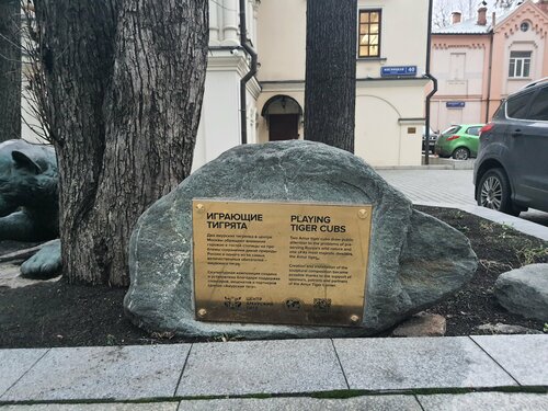 Скульптура «Играющие тигрята». Установлена перед штаб-квартирой центра «Амурский тигр» (ул. Мясницкая, 40с4). Открыта 18 августа 2017 г., в день 172-летия Русского географического общества, инициатора создания центра. Скульптура представляет собой фигуры двух амурских тигрят, играющих с ежом. Фигуры выполнены из бронзы в натуральную величину. Автор — ск. Пётр Чегодаев. В основе сюжета композиции — снимок, сделанный фотоловушкой.