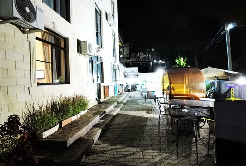 Место расположения удачное. До моря минут 10, правда с горки) , а потом, разомлевшими, на горку подниматься. Хозяева очень приветливые. И горничные тоже хорошие. В доме чисто, постоянно убираются. Обувь оставляют вне дома. И ходят босиком. Белье меняют раз в 5 дней. Полотенца - хоть каждый день(что было очень приятно). Мы отдыхали две недели. Первый номер был с верандой. Это удобно - там стоит сушилка для белья. Второй номер - без веранды, но сушить белье можно либо на смотровой площадке(из-за жары туда не поднимаются), либо - на улице стоят сетки-сушилки. На территории есть качели, гамак, батут, бассейн, крытые мини-беседки для принятия пищи. Есть кухня(вход со двора). Плиты газовые. В фойе - кофемашина. Оплата картой, что тоже удобно. Тем, у кого отравления или аклематизация - можете обращаться в санаторий "АкваЛоо" . 1 корпус, 110 кабинет. Море чистое, пляж галичный. В августе народу было не оч много. Ездили на прогулку в Сочи - на узких пляжах - не то, что лечь - встать не куда!) Здесь - прям кайфунций на пляже. Правда есть и минус - лежаки платные - 1тр /день. Нам и на лежанке своей было комфортно) С питанием(кафешками) в Лоо напряжно. Мы неделю искали место. Было страшно отравиться... Нашли рядом с отелем - "Ной". Это кафе, хотя они себя называют рестораном. Все сытно. И порции большие. Периодически - живая музыка. Фотки отеля можете посмотреть у них на сайте. Рекомендуем!) Р. S. Здесь же вам предложат экскурсии на кабриолете и тд))