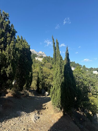 Это не парк, а скорее кусочек настоящей нетронутой Алупкинской природы, - той, которая была на этом месте всегда – дубы, кипарисы, можжевельники, иглица понтийская , обдуваемые морским ветром и растущие среди обломков скал. А назвали парком вероятно для сохранения данной территории. Но тем не менее от неё все равно откусили кусок и построили какой-то убогий дом в начале нулевых годов. Мэр ялты приезжала, обещала снести, но видимо недостаточно сил. Комментаторы пишут, что парк не благоустраивался лет 30. Но 30 лет назад здесь точно также были только тропки. В нулевых добавили как попало слепленные бетонные ступеньки для спуска к морю. А дальше деревянный мост к морю, который потом сгорел. В целом в парке ухаживают только за центральной аллеей и памятником воинам, раненым во время освобождения Крыма в 1944-м году и умершим в военных передвижных госпиталях, расположенных в то время в Алупке.
