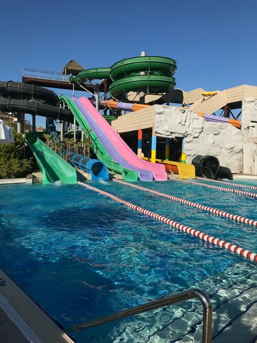 Наш любимый отель с 2018 года. Лучшее место для отдыха с детьми. Отличный детский клуб с разнообразной программой для детей всех возрастов (интересен до 10-11 летнего возраста), полноценный аквапарк с горками для детей и взрослых, полноценный отдельный ресторан для детей с хорошо продуманным детским меню. Большая зелёная территория с несколькими бассейнами, теннисными кортами, футбольным полем, отличной детской площадкой. Большой песчаный пляж с тентами и лежаками и пунктом проката скутеров, бананов, катеров, парасейлинга. Разнообразное вкусное меню с большим выбором рыбных, мясных блюд, овощей, фруктов, ягод, десертов. Качественные напитки в барах. Приветливый персонал, оперативно реагирующий на замечания и пожелания. Интересная анимационная программа по вечерам. Отель не подойдёт для любителей прогуляться по турецким базарчикам; в непосредственной близости их нет. Ближайший торговый центр Forsa Mall, Migros, аптека в 1,5 км (20 минут пешком). На территории отеля есть несколько небольших магазинчиков с кожаными изделиями, сумками, обувью, легкой одеждой, ювелирными украшениями, сувенирами.
