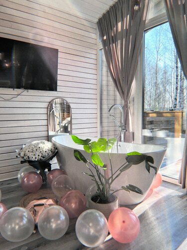 Прекрасное тихое местечко для отдыха на природе. Домик чистый и уютный с современным интерьером. Есть всё для комфортного отдыха. Обязательно приедем ещё 🫶
