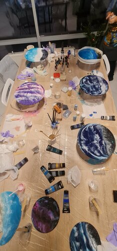 Отличное место, где креативно можно провести время, красивый вид из окна, душевная атмосфера, музыка. Провела день рождение, делали из смолы картины, шампанское, музыка, наш мастер нам все помогала, подсказывала- получилась такая красота. Придем еще раз, обязательно .