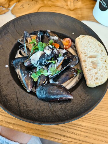 Не первый раз в этом магазине. Магазин интересный, в целом мне нравится, но в этот раз я совершил ошибку, решив перекусить в их фастфуде. Я заказал салат "хрустящий баклажан" и "Черноморские мидии под соусом Блю чиз". Салат хороший, но мидии всё перечеркнули всё впечатление. Мало того, что эти мидии напоминали по вкусу пластмассу, соус был совсем пресный, размазан по дну тарелки. Где-то 5-7 мидий были закрыты, многие были расколоты, попадались мелкие осколки, а это уже не безопасно есть . Если вдруг окажитесь в этом месте, дважды подумайте прежде чем делать заказ...