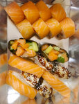 Роллы реально классные нам подали. Несколько видов сет был, каждый отличается по вкусу, приготовлено с пониманием дела, продукты качественные. Рис правильный в роллах, много начинки.