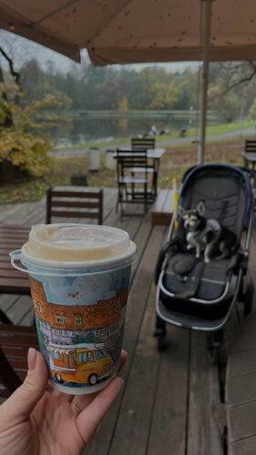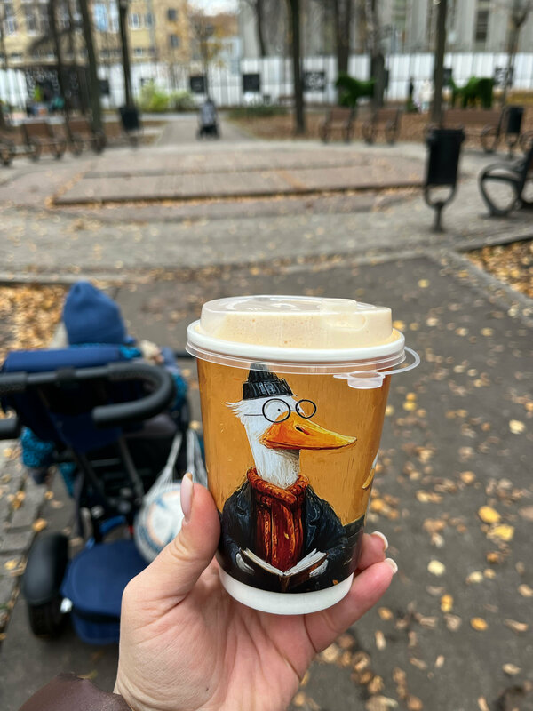 Милая кофейня с клеевыми стаканчиками. Добавьте пожалуйста круассаны классические и можно что-то не очень сладкое для детей. Кофе вкусный 👍