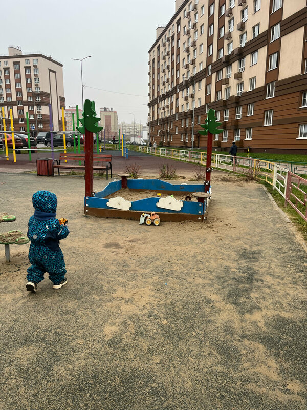 Клевая детская площадка! Дети летом бегают в носочках, просто огромная песочница. Всем очень нравится. И для разнообразия классное место. Есть лавочки где посидеть, горка, где полазать, где покачаться (качели необычные)