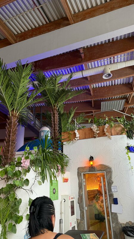 Сказать что это было ужасно, ничего не сказать. Допотопный, старый комплекс,внешний вид которого не менялся тут наверно с 2000 года. В аквапарке работают 2,5 взрослые горки, совершенно не функциональные зоны спа и терм. В термах лягушатники какие то старинные, горячий бассейн на улице вообще не работал! В спа заходишь попадаешь как в каменный век, раздражающие мигающие фанарики прошлого века, каменный пол везде того же века, 2,5 бани и ужасный хамам. Сотрудники в кафешках и в комплексе неприветливые (тут сложно быть приветливым) и очень много сотрудников в сильно преклонном возрасте.. Про общую раздевалку я вообще молчу! Женщины в полотенцах, мужики в джинсах, дети, все в одном помещении! Цена=качество не соответствует от слова совсем! За такие цены которые вы тут дерете, можно сделать светлый современный комплекс, закрыть страшный каменный пол, сделать раздельные раздевалки и душ. кабины,или хотя бы для начала заменить потрепанные каталоги с ценами и трескающиеся столешницы на ресепшенах. Как можно в современном мире где куча конкуренции относиться так к своему бизнесу-не понятно. Атмосферные фото прилагаю. 👎🏻