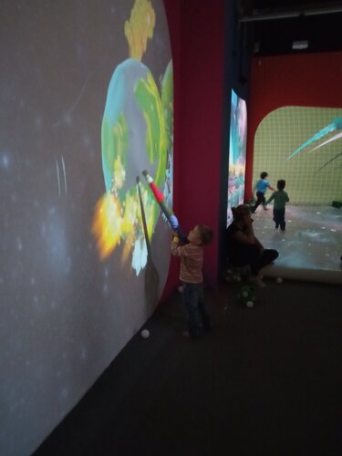 Хотя место небольшое, разнообразных развлечений очень много и на любой возраст. С нами были дети 2, 4 года и 10 лет. Малышу больше всего понравилось бегать по полу за разными интерактивными картинками и кидать шарики в передвигающихся оживших животных, а также отправлять их с картинок на стену. 4-летки зависли в песочнице с любимыми "живыми" динозаврами, откапывая для них озера, много раз прибегали красить планеты на стенах, прыгали, катались с горки. 10-летка собирал все фигуры из больших кубов, на которые проецируются различные картинки космической тематики, и раскрасил все раскраски для создания оживших животных на стенах. Конечно, всем очень понравился мастер-класс по созданию мороженого, оно было очень вкусным. Первое впечатление было, что там нечего делать больше часа, но мы с трудом ушли через 3 часа.