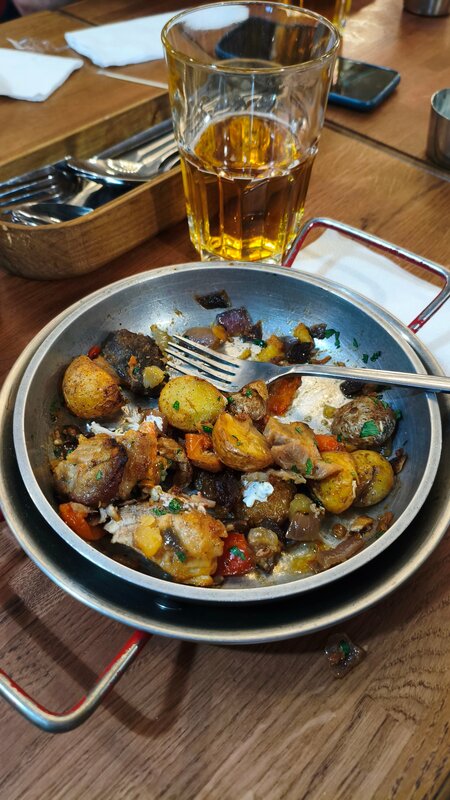 Столик бронировали заранее, но и мест было много, сказали что неделю у них перебои с продуктами, салата из баклажанов не было и никакой пасты тоже, сковородку спас только отдельный соус, пиво понравилось от заведения.