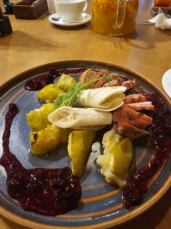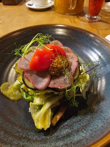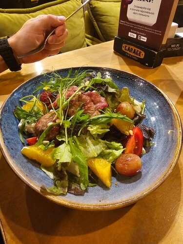 Прекрасное атмосферное и красивое место. Подходит для всей семьи, 3 этажа, на 3м этаже есть игровая для детей. Пошли туда по рекомендации и не пожалели) нас приятно и радушно встретили, очень вежливый персонал. Напитки и еду принесли по готовности, не долго. Мы брали томленую баранину с овощами(тает во рту мясо🥰, без неприятного аромата), оссабуко (мясо говядины и пюре), салат с хрустящие баклажанами(панировка в рисовой муке, из-за этого корочка не такая хрустящая, но все равно вкусно)и дети брали роллы. Все невероятно вкусно, достойно. По кухне есть все, выбор большой) Однозначно рекомендую!!! Ещё зайдём не раз!!!