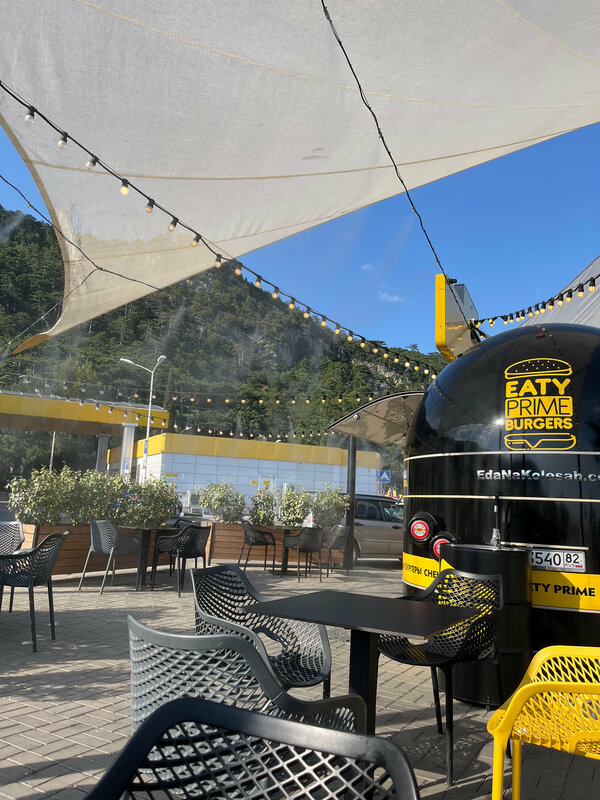 Классный вагончик с фаст-фудом возле смотровой с Атаном! Когда бываем в районе всегда заезжаем,нам нравится приветливый персонал который всегда поможет и посоветует) вкусная и свежая еда,которую готовят в одно мгновение) вообщем не первый раз в Eaty,мы всей семьей советуем!!