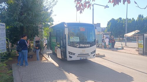 Выезжали на Анталью в 5М Миграс на экспрессе КА07. Оплата при выходе. Едет быстро. 45 минут. С комфортом. Отправления ждали не долго. Есть навес от солнца на остановке. Водитель честно даёт сдачу
