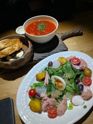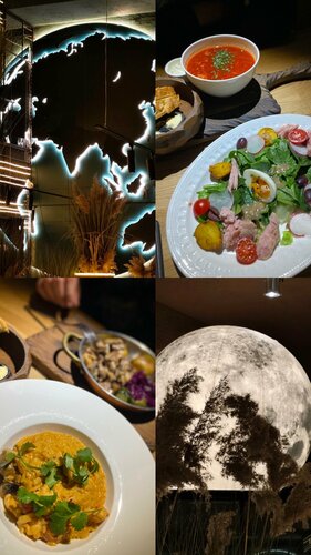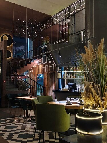 Я в восторге от Вашей Луны Я такого интересного интерьера ещё не видела нигде и никогда! Достаточно хорошая посадка и в будни и в выходные ,лучше конечно бронировать столики заранее . Фишка этого ресторана смокер Есть и основные блюда очень необычные и классные десерты .Порции хорошие ,открытая кухня ,отличное и вежливое обслуживание.Бар в виде корабля 😍 Хотя бы разочек обязательно должны побывать все .Мой муж отметил что борщ очень вкусный ,а он почти везде их перепробовал . Я первый раз ела салат Нисуаз и мне очень даже понравился,к орзо и бестрогонову вообще нет вопросов идеально 🤩
