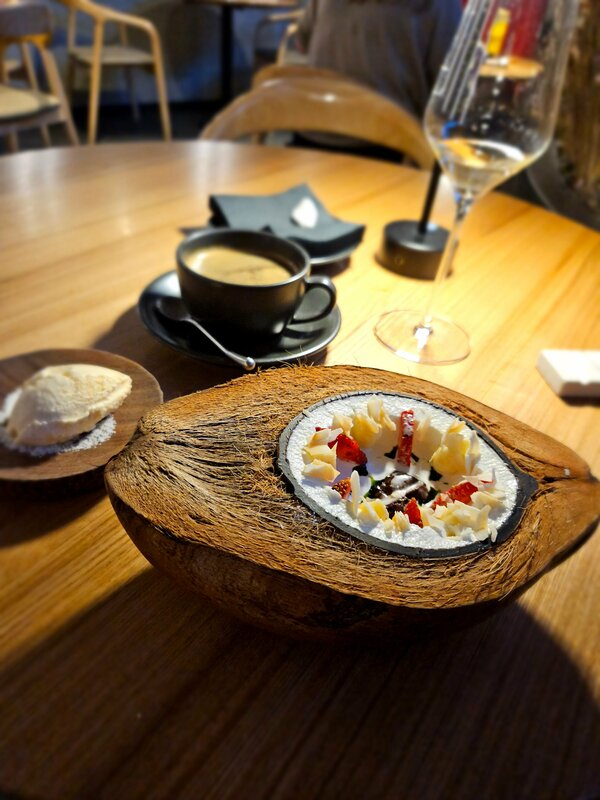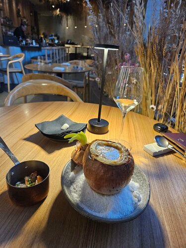 Прекрасное место 🫶 Хороший выбор вина, интересная подача, официанты знают своё дело, обслуживание на высоте! Стильный интерьер.