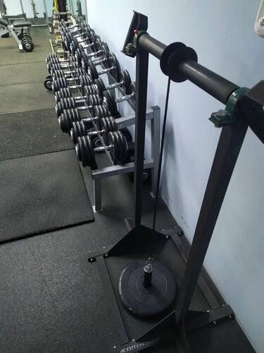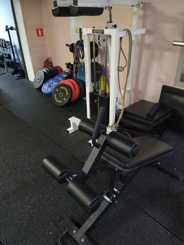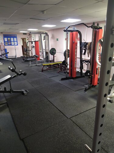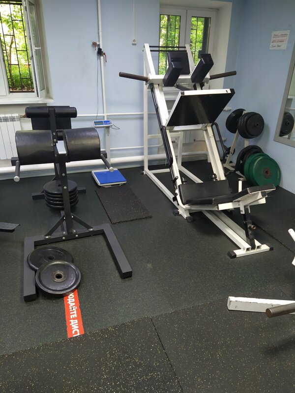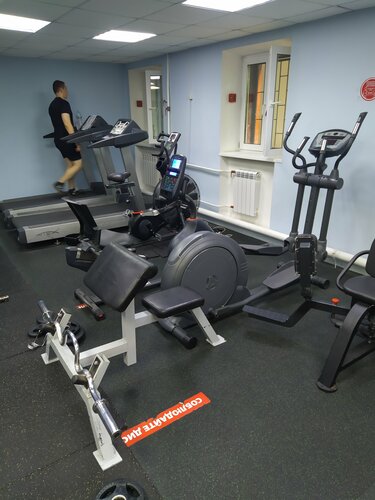 Хороший тренажёрный зал, правда некоторые тренажеры скрипят и тросики почти порвались. Кардио есть, железа хватает. Душ,туалет.мудреный подъезд через дворы) Вход с торца дома. Очень общительный вахтер)