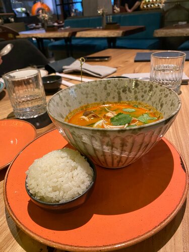 Посещала с сестрой 09.01.2026. Был снежный циклон Френсис и мы не смогли попасть в заранее выбранное место, что бы отметить её день рождения. Смогли добраться только до ближайшего к дому места. Но сожалеть не пришлось. Как и в прошлые визиты. Из однозначных плюсов: кухня, ценовая политика, подаренный на ДР сестре кейк с маракуйей, вполне аутентичный том-ям с неперемороженными креветками, общий стилистический концепт и особенно тематическая елка. Кстати, в зоне морской елки правильный свет и получились хорошие фото. Благодарность за помощь с выбором и комплиментарное обслуживание официанту Стейше. Из маленьких минусов, не повлиявших на общую оценку: был закрыт raw-bar . Надеюсь, что временно. В прошлые визиты были отличные дикие устрицы по хорошей стоимости и ежи тоже неплохие.