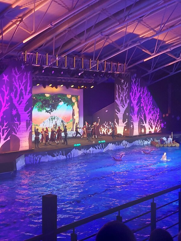 Посетила здесь в бассейне 5 января необычный спектакль "Сказ о русских берегах". Необычный подарок любителям водного мира всех возрастов. Стоит посмотреть. Радуйте мир, себя и друг друга!🎄🍊🌊💜🧜‍♂️🧜‍♀️🧜Супер!🌊💜 Волшебно💥. Особенно запомнилось как дети разбудили водяного духа на флайборде. Фантастика!🔥