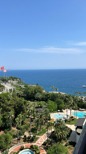 Отдыхаем с 15.06.25 и хочу сказать что отель превосходный! Прочитав некоторые негативные отзывы могу смело заявить что они не оправданы. Отель предоставляет сервис и питание и удобства намного выше той цены, по которой отдыхают в нем люди. Начнем сначала, для удобства есть три больших современных и быстрых лифта с зеркалами, далее номер, вид со всех сторон здания захватывает дух, номера чистые, мебель очень добротная, постельное белье качественное и кровати очень удобные, шторы блэкаут, чайник и все необходимое в номере есть. Уборка тщательная и быстрая. Отдельно хочу сказать о питании, роскошные ! Завтраки с натуральным йогуртом, богатый выбор на любой вкус блюд, обед и ужин всегда несколько блюд со свежими продуктами, много салатов хумус аджика разные соусы, гриль а фрукты ! Это отдельная любовь так как арбузы дыни абрикосы все спелые а не деревянные как в других отелях видимо руководство отеля очень следит за питанием гостей. Мороженое алкоголь , вино местное но вкусное и после него не болит голова. Большой плюс персонал говорит на русском языке. Территория большая разнообразные зоны отдыха и много зелени и хвойных деревьев, бассейн два уровня с чистейшей водой и красивой архитектурой. Пляж собственный с баром с напитками и хорошим вайфай что не маловажно лежаки удобные расположение в пешей доступности или есть трансфер, отдыхаем и наслаждаемся своим выбором отеля ! Очень удобное расположение от базара и всей инфраструктуры города ! Рекомендуем !!!