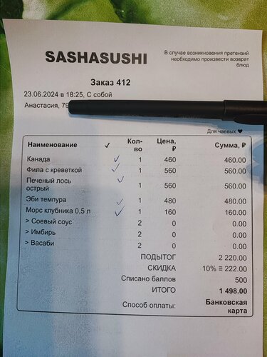 Узнали об этом месте случайно и решили попробовать заказать после нескольких положительных отзывов в ТГ чатах. Понравилось. Заказывали: Ролл Канада: достойные, невероятно вкусные. Эби темпура: тоже зашло, вкусненькие, очень крупные и сытные. Фила: единственное пресноваты. И лосось бы чуть лучшего качества и будет вообще бомба. Лось запечённый: на мой вкус - на любителя)) начинки маловато было и кажется что ешь пасту из роллов)), хотелось бы чтобы ощущалась текстура блюда. Но, плохого ничего сказать не можем. В целом впечатления от заказанных блюд только положительные. Цена - качество действительно соответствуют (по этим позициям, т.к другое не пробовали ещё). Закажем ещё. Надеемся примете во внимание пожелания. Пока что хочется вас рекомендовать.