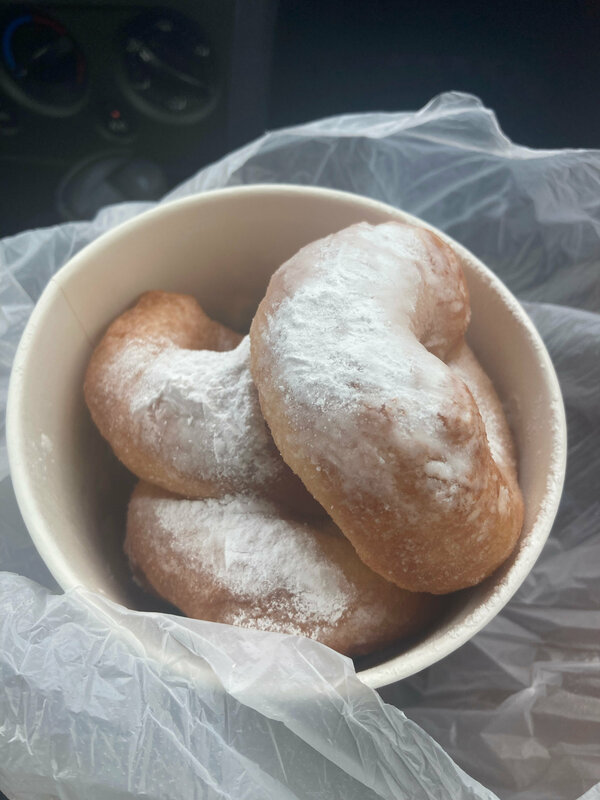 Меню конечно в основном мучное, но пончики вкусные, только ради них заехали попробовать. Кондей шпарит хорошо, туалет нормальный. Персоналу спасибо, очень доброжелательны) приятно.