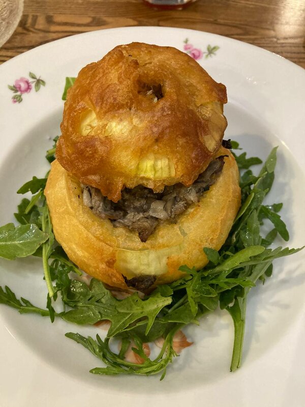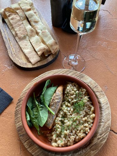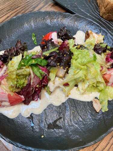 Буду честной и объективной. Место интересное, меню оригинальное, вкусная кухня, интересный дизайн, хочется разглядывать каждую деталь и рассматривать каждый уголок. Мы заказали пасту, теплый салат,мини-пирожки с гусем и жульен с гусем в луковице. Все вкусно и сытно. Из минусов отмечу сиденья некоторых стульев. Именно у меня сидушка проваливалась и было неудобно. Также официант не сообщил нам о бизнес-ланчах и не принес меню бизнес-ланчев, об этом мы услышали от женщин за соседним столиком, которые делали себе заказ бизнес-ланчей. И как по мне, мухи не должны летать в ресторане и садиться на тарелки. Оценку не снижаю, фото мух не прикладываю, но хочу обратить внимание администрации над чем стоит поработать.