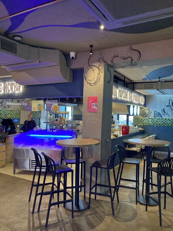 Заведение понравилось, много посадочных мест на первом и втором этажах. Есть уличная веранда и там тоже есть столики. Удачное расположение в туристической зоне. Еда вкусная, брали из разных корнеров, готовят быстро.