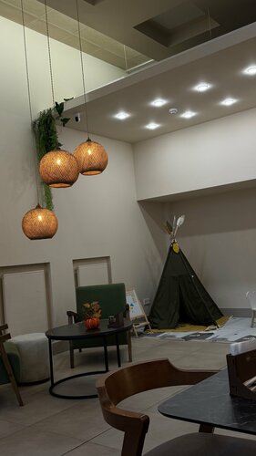 Спонтанно зашли на завтрак, по пути домой после дороги. Уютная кофейня, с зоной для детей, и настолки для взрослых. Есть акция кофе+десерт (без выбора, наугад) 11₽; прикольная акция, воспользовались. Взяли 🥪 сэндвичи, думали их делают, но они покупные, но их греют, кайф) вкусные! С рыбой и салями. Туалет тоже есть) интересный к нему проход) кофе посредственный, хороший, но и лучше можно найти) девочка бариста хорошенькая, поздоровалась и рассказала про акцию)