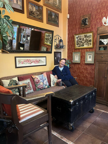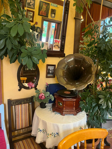 Потрясающее маленькое кафе. Уютно как дома, при этом это маленький музей. Чего только нет, все виды утюгов, старые швейные машины. Старинные кофемолки и кофеварки. Раритеты не перечислить. Вкусный кофе и пирожки.